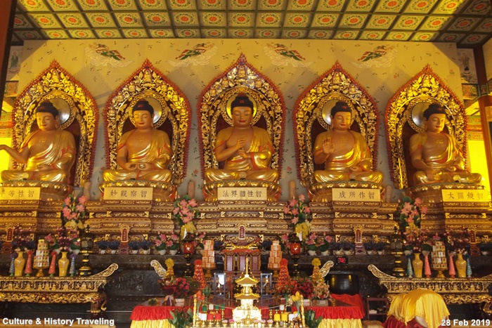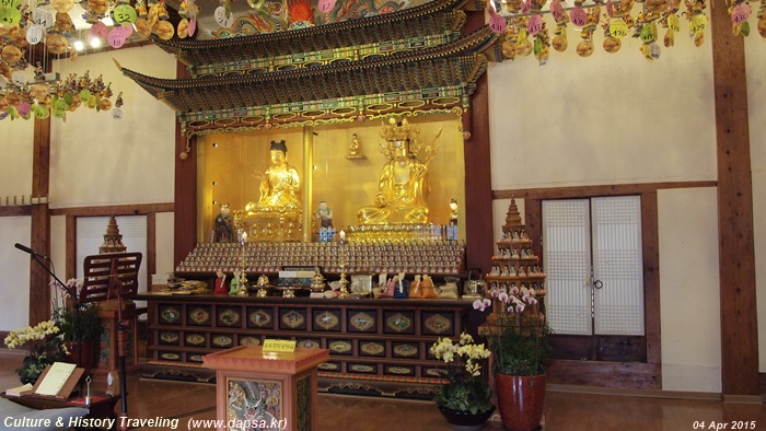 천왕전을 지나면 대웅보전이 중심영역으로 들어선다. 양쪽에는 구고지장전(救苦地藏殿), 평안지장전(平安地藏殿)이 있으며 다음으로는 종루(鐘樓)와 고루(鼓樓), 요사채들이 배치되어 있다. 대웅보전은 오방불(五方佛)을 모시고 있으며 뒷면의 관음보살, 선재동자, 용녀가 모셔져 있다.