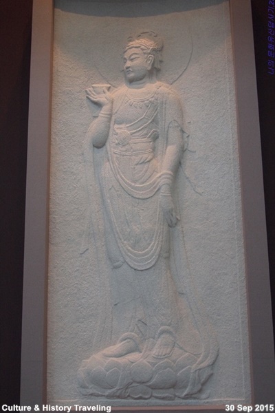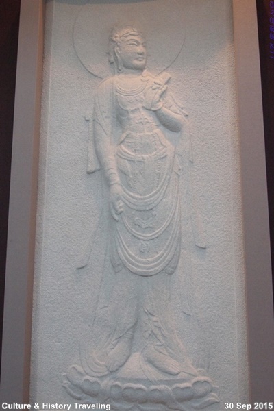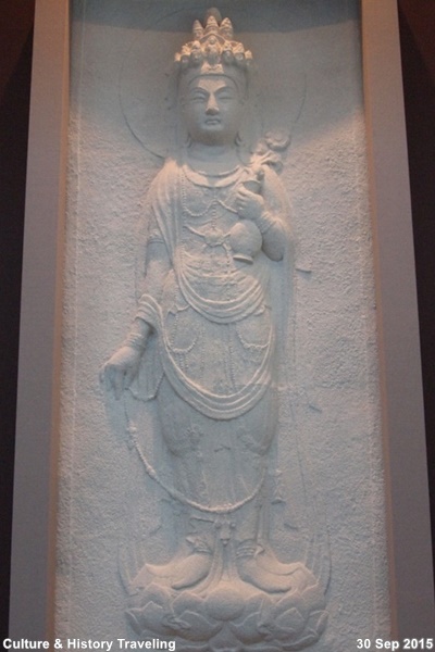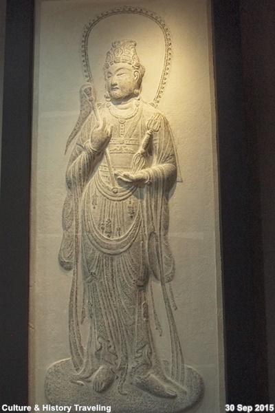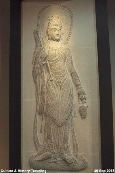 동쪽벽에 새겨진 보살입상은 주존불에 비해 얕게 새겨 놓고 있다. 오른손 몸앞에 보병(寶甁)을 쥐고 있어 관음보살을 표현한 것으로 보인다.