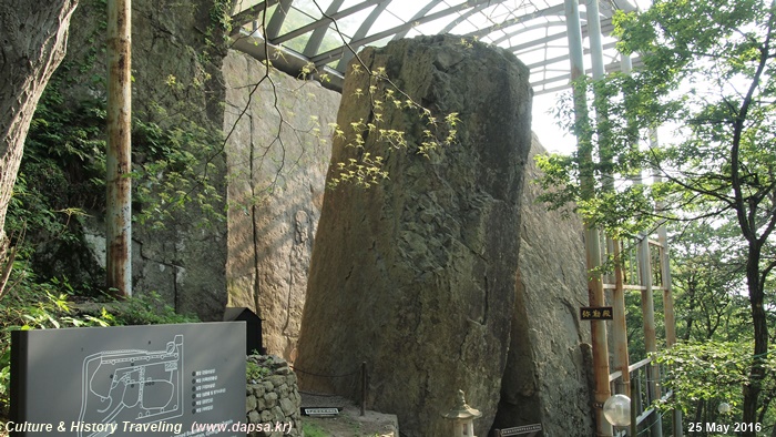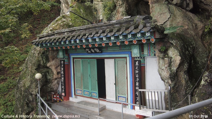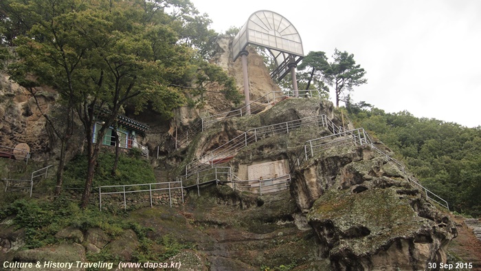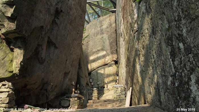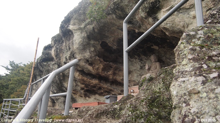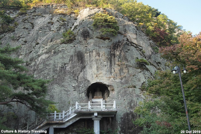 주불전이라 할 수 있는 마애여래좌상(보물)은 석굴 중 가장 윗부분 바위에 새겨놓은 마애불상이다. 자연석의 석질이 고르지 않이 일부 손상된 부분이 있기는 하지만 조각수법이 뛰어나며 입체감이 돋보인다. 경재 정선의 그림에서는 목조전실이 표현되어 있다.