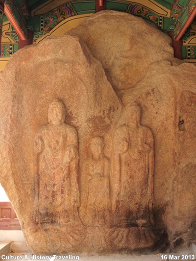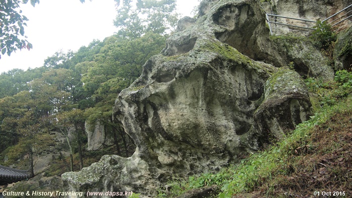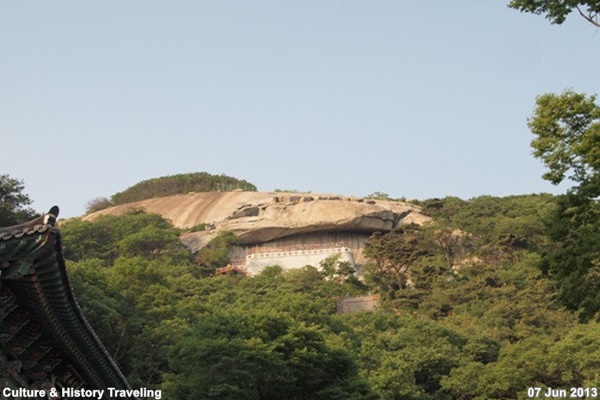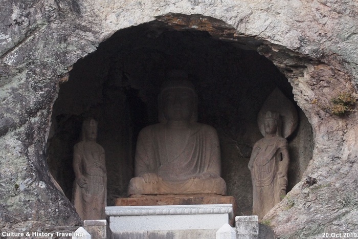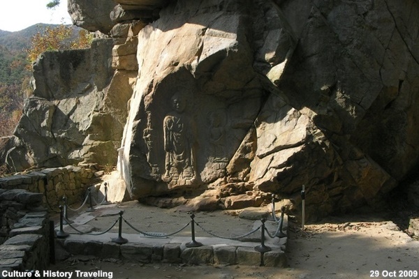 단석산 신선사 마애불상군(국보)은 7세기 초에 조성된 신라에서 가장 오래된 석굴사원이다. 거대한 자연암석이 ‘ㄷ’자형을 이루고 있는 곳으로 인공적으로 지붕을 덮어 석굴사원을 만들었을 것으로 추정하고 있다. 단석산은 경주와 청도군을 연결하는 20번 국도가 지나가며, 북쪽편에는 선덕여왕이 백제군을 물쳤다는 여근곡(女根谷) 전설이 전해오는 오봉산(해발 634m) 부산성이 자리잡고 있다. 삼국이 패권을 다투던 시기 백제군의 침입이 예상되는 주요 교통로였던 곳이다. 중국 산동지방 북제의 영향을 받은 서산과 태안의 백제 삼존불상과 석굴사원이 신라로 전해진 것으로 보인다.