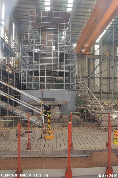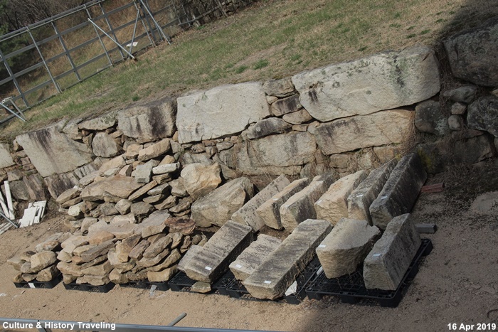 석굴암 석굴로 올라가는 계단길 옆에는 석굴암을 수리 할 때 교체된 옛 석굴건축부재들과 기타 주변 석물이 놓여 있다.