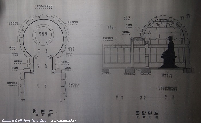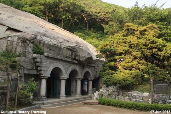 토함산 동쪽 기슭에 있는 석굴암 석굴(국보)은 통일신라 경덕왕 10년(751년) 김대성이 불국사와 함께 건립한 것으로 전생의 부모를 위해 세웠다. 석굴의 구조는 앞쪽은 전실은 사각형을, 본존불이 모셔진 주실은 원형을 하고 있다. 이는 동양의 천원지방(天圓地方, 하늘은 둥글고 땅은 네모지다.) 사상이 반영된 것으로 보인다. 주실에는 그 존재에 대해서 여러 의견이 있는 본존불을 중심으로 천부상.보살상.나한상이, 전실에는 인왕상(금강역사)과 팔부중상이, 복도에는 사천왕상이 새겨져 있다.