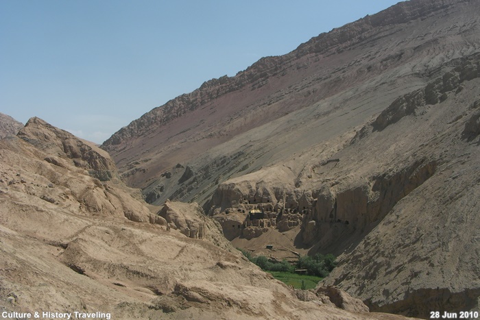 바위산을 뚫어 석굴 사원들을 조성해 놓았다. 석굴은 둥근 아치형 천장과 직사각형의 평면을 하고 있으며 천정과 벽면은 불화로 장식하고 있다. 석들은 대부분 도굴되어 벽화를 볼 수 있는 석굴은 많지 않다. 하지만 남아 있는 벽화만으로도 당시의 석굴사원의 정취를 느낄 수 있다.