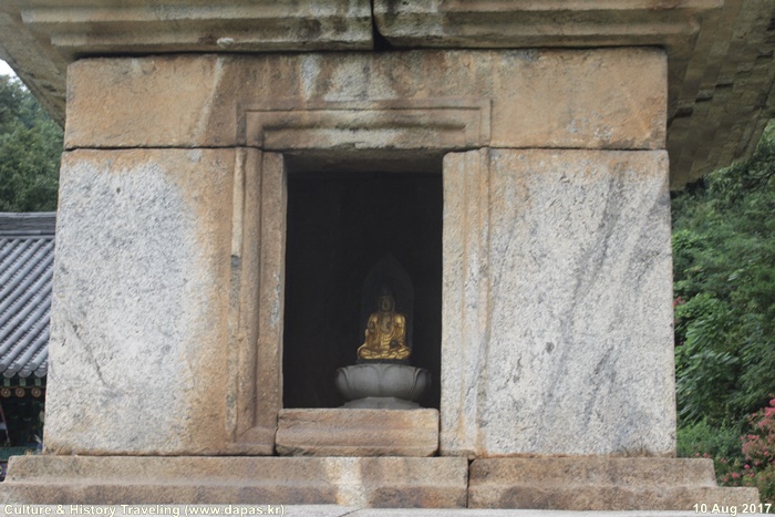 1996년 수리를 위해 해체했을때 내부에서 사리함, 금동불 입상과 금동으로 만든 탑, 사리 등이 발견되었다.